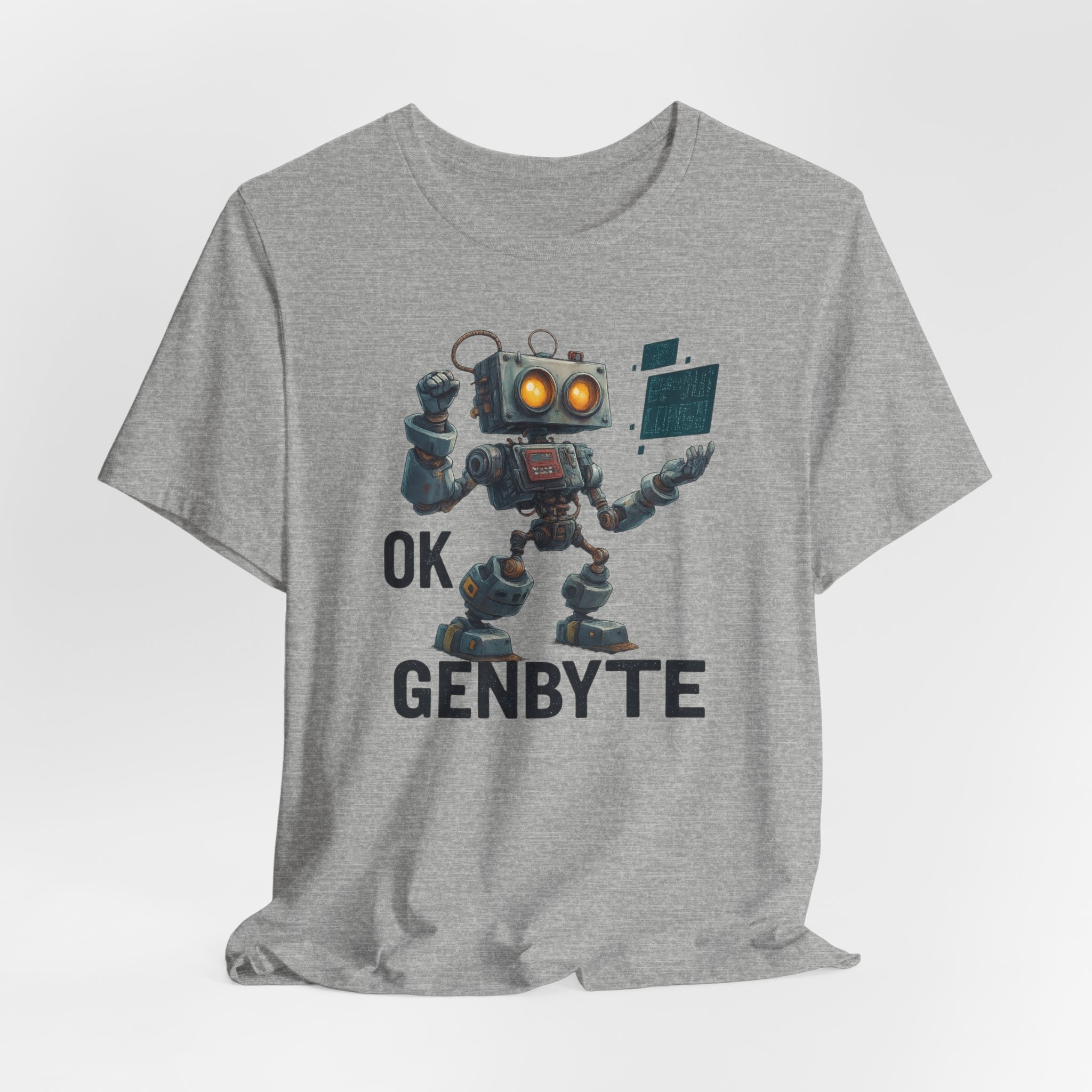 A cool, futuristic robot design with a circuit board in one hand, perfect for tech enthusiasts and sci-fi fans. This unisex jersey short sleeve tee gives off a modern, edgy vibe and is ideal for casual wear or tech-themed events. Relevant for birthdays, comic cons, and tech-related holidays.